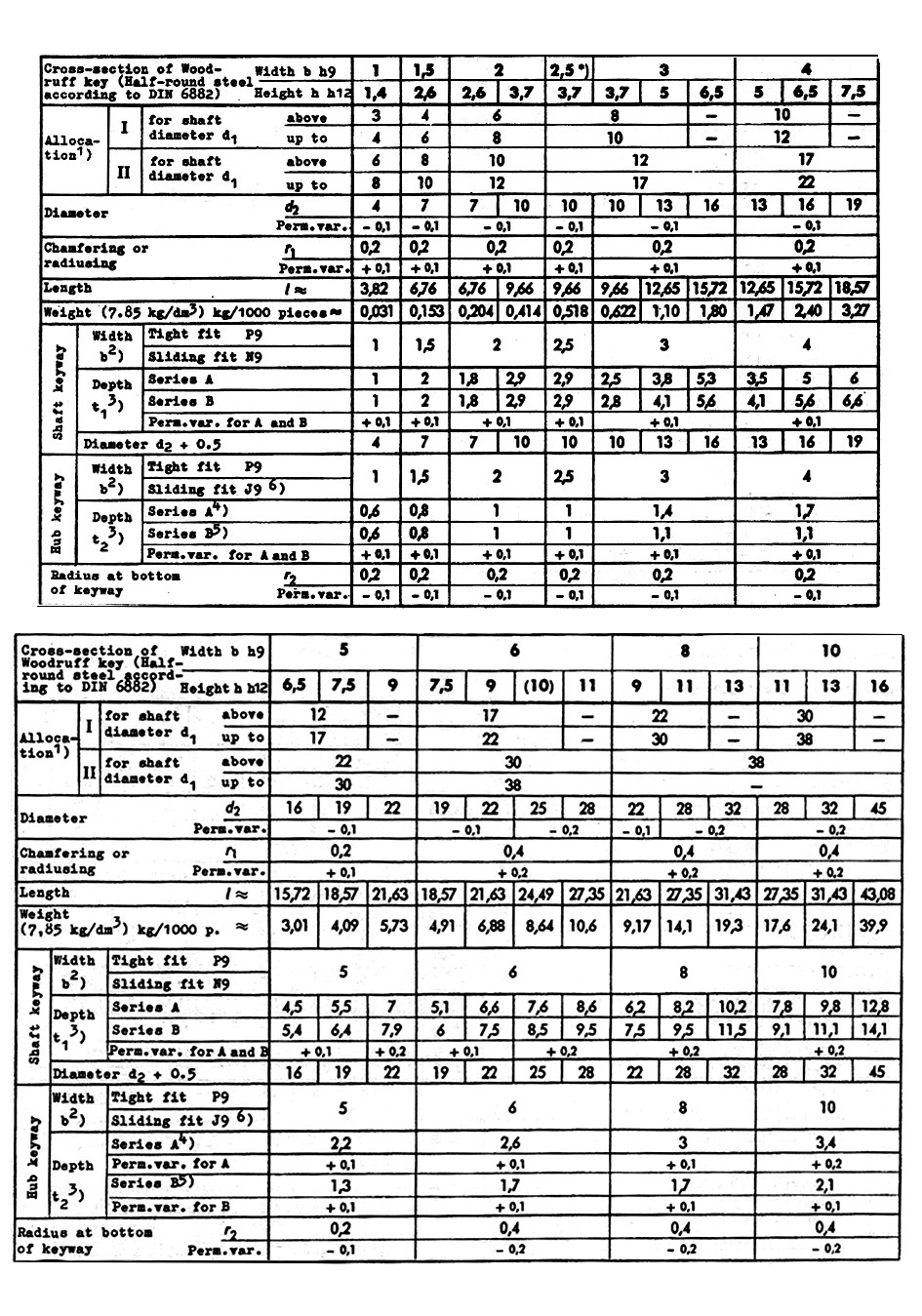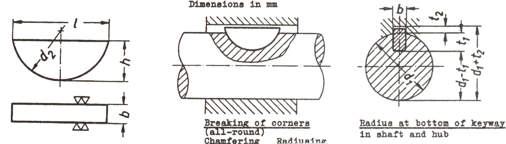 Drive-type fastenings without taper action-Woodruff keys-Dimensions and application