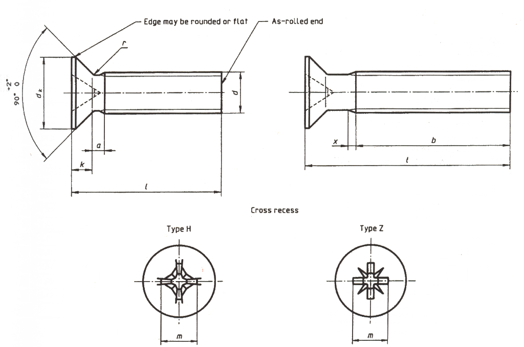 Countersunk flat head screws (common head style)with type H or type Z cross recess,product grade A-Part 1:Steel of property class 4.8(ISO 7046-1:1994)