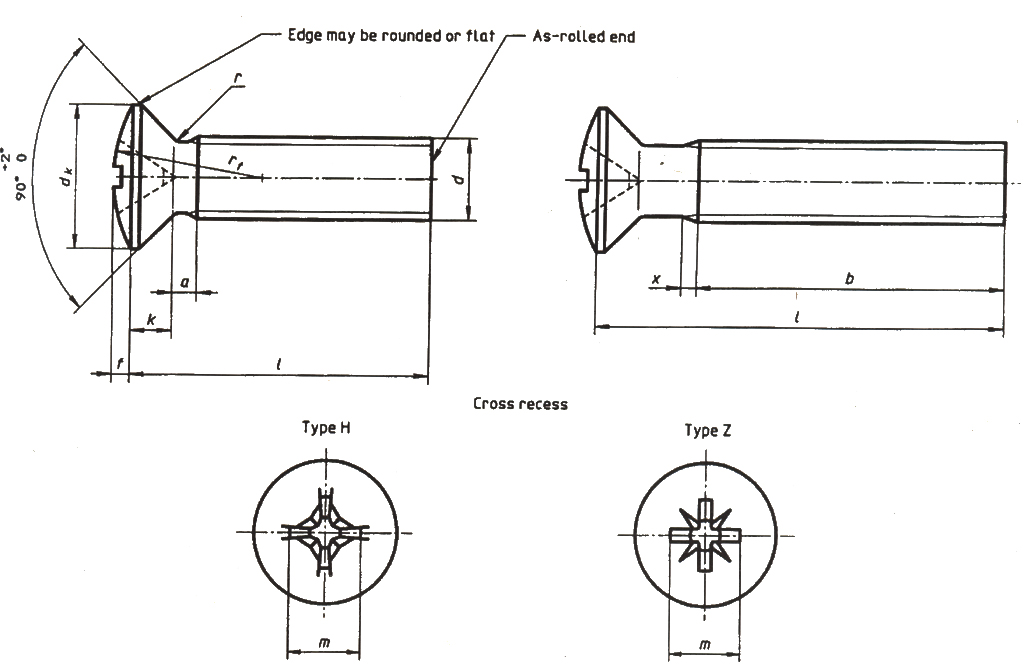 Countersunk raised head screws (common head style) with type H or type Z cross recess-Product grade A(ISO 7047:1994)