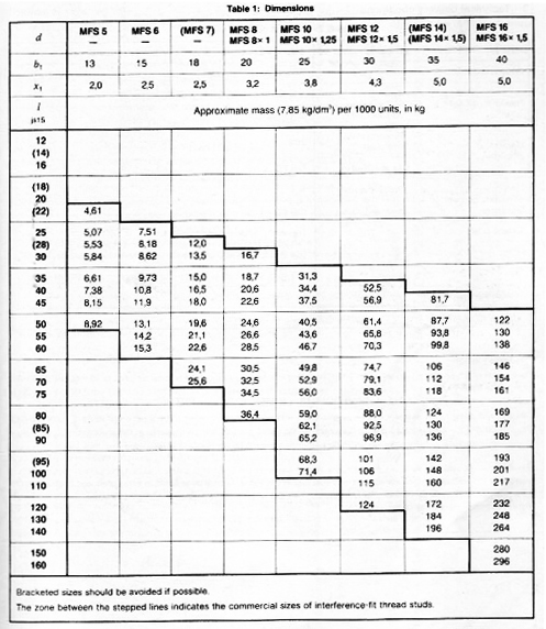 Metric interference-fit thread studs with a length of engagement equal to about 2,5d(type B)