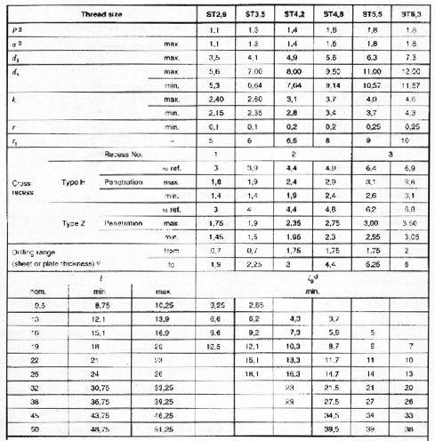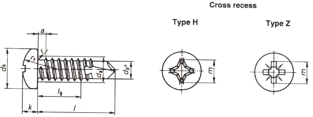 Cross recessed pan head drilling screws with tapping screw thread(ISO 15481:1999)