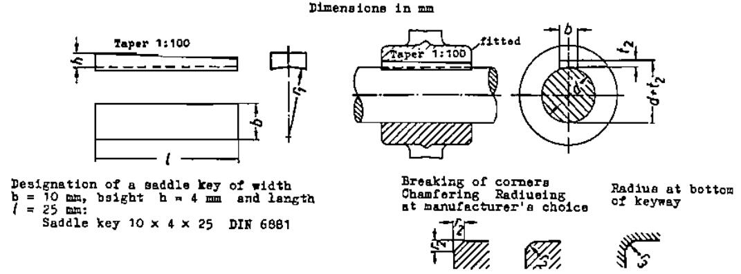 Taper key torque transmission - Saddle keys - Dimensions and application