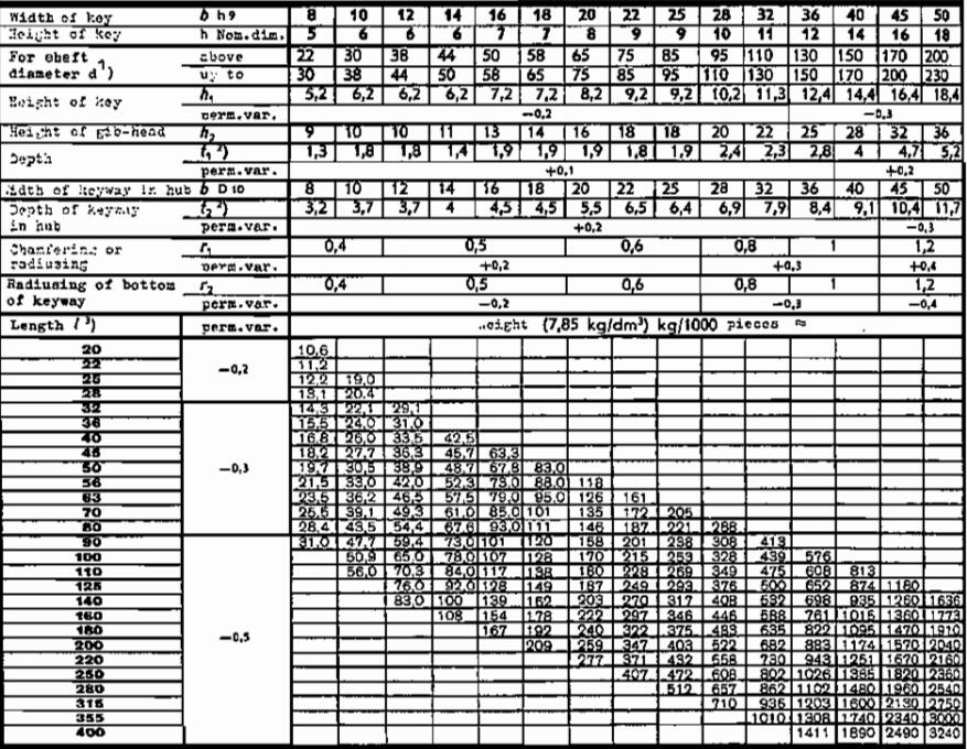 Taper key torque transmission - Gib-head parallel keys - Dimensions and application