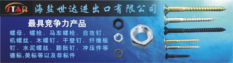 螺栓(丝),螺母(帽),螺钉,自攻螺钉,机用螺钉,木螺钉,垫圈,挡圈,及非标准件,涉及GB,DIN,JIS,ASTM,BSW等标准的出口型企业...